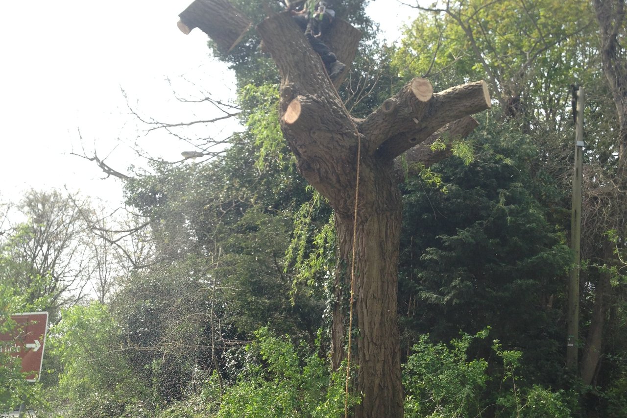 Sometimes dangerous trees need to be maintained. Unfortunately this beautiful Willow tree lost 2 large limbs due to decay and was very dangerous. The tree was protected and after meeting with the local tree officer, it was decided to pollard the Willow to the main fork. The tree has since started to put on healthy new growth.